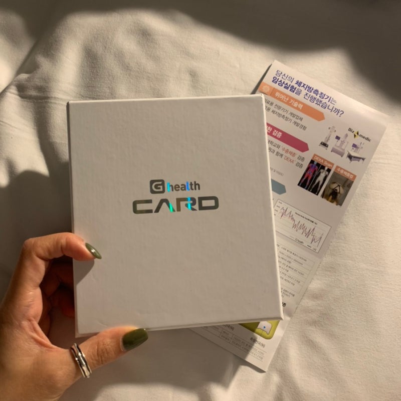 이게 바로 지헬스카드(지헬스 휴대용 체지방 측정기)에요~ 저는 핑크핑크로 골랐어요 ㅎㅎㅎ