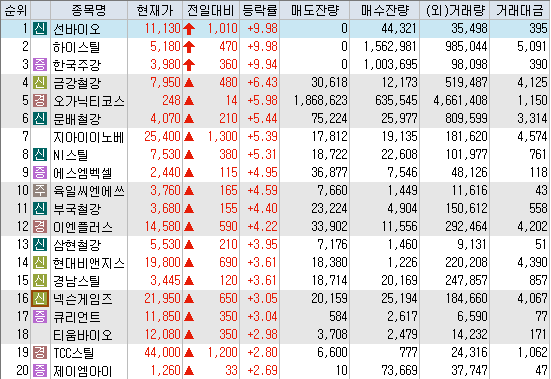 3. 고려주강_9.94% : 한국산 냉연강판에 대한 미국의 상계관세 결정 소식, 철강경기 회복 기대감 지속 등 시간외 관련주로 부각